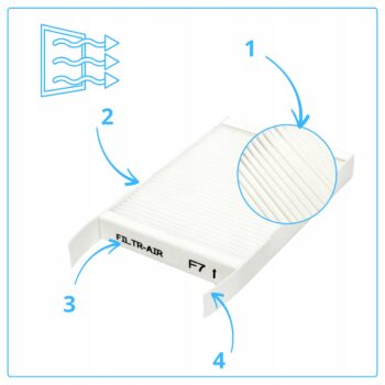 Filtr powietrza G4 i F7 do rekuperatora Zehnder ComfoSpot 50, skutecznie oczyszczający powietrze, zawiera dwa filtry wstępne G4 oraz dwa filtry główne F7.