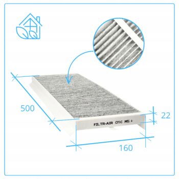 Zestaw filtrów G4 i M5 węglowy do rekuperatorów Zehnder Comfoair Q 350, 450, 600 oraz Aeris Next, zapewniający skuteczne oczyszczanie powietrza z nieprzyjemnych zapachów i zanieczyszczeń.