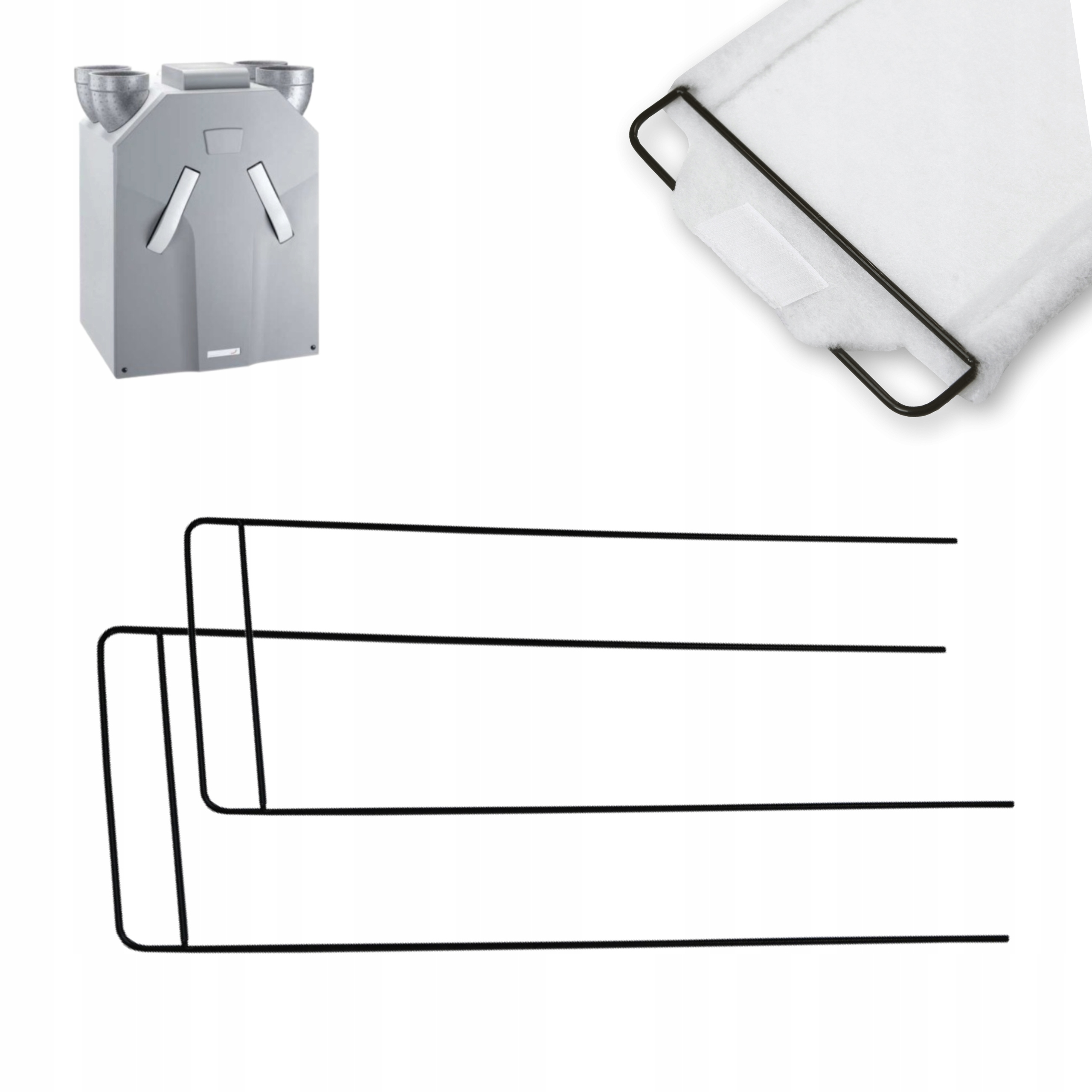 Zestaw zawiera 2 metalowe ramki oraz 2 filtry G4, idealne do rekuperatorów Zehnder Aeris 350/450/550 i innych modeli, zapewniające efektywną filtrację powietrza.