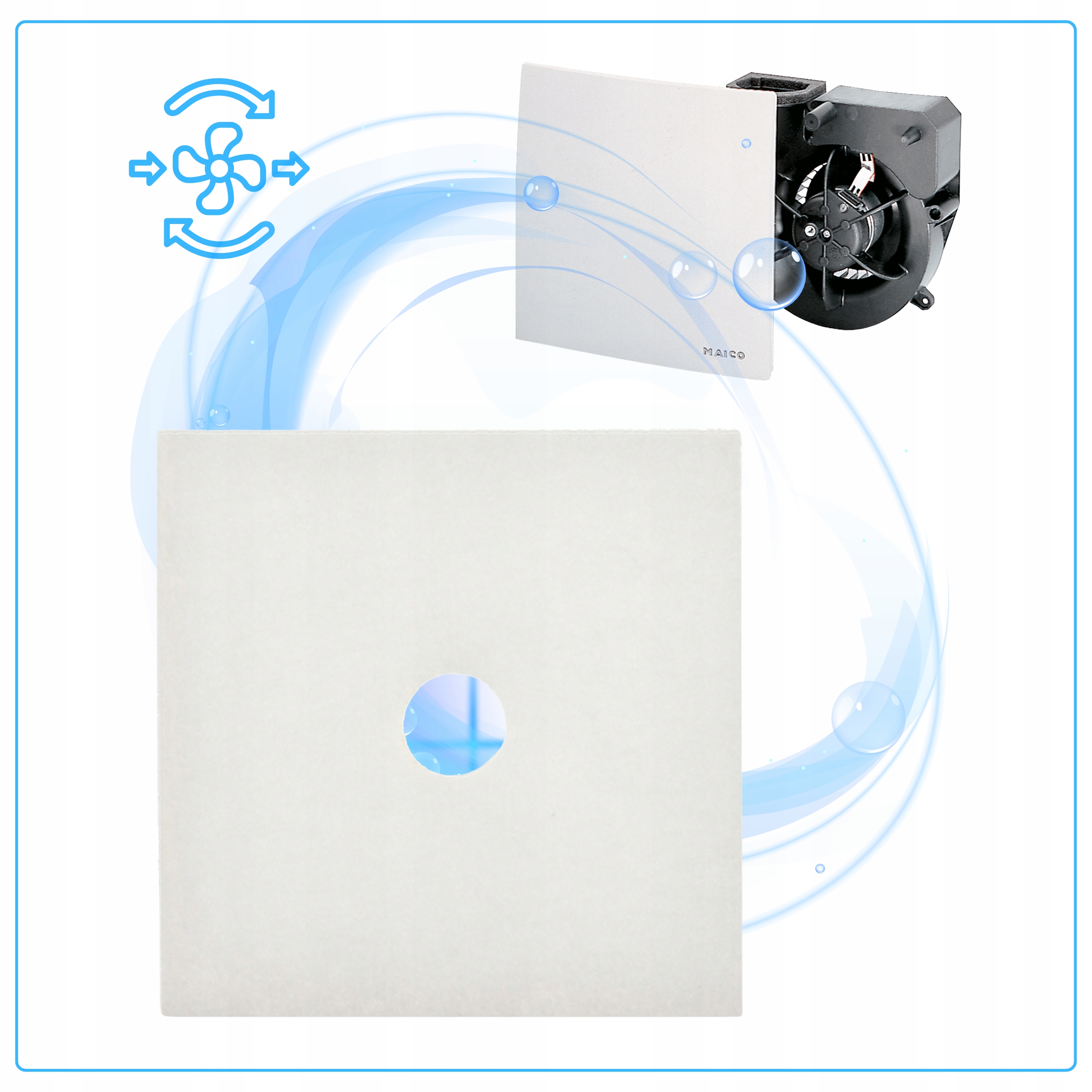 - Ilość w opakowaniu: 30 sztuk filtrów powietrza do wentylatorów MAICO ZF 60/100.