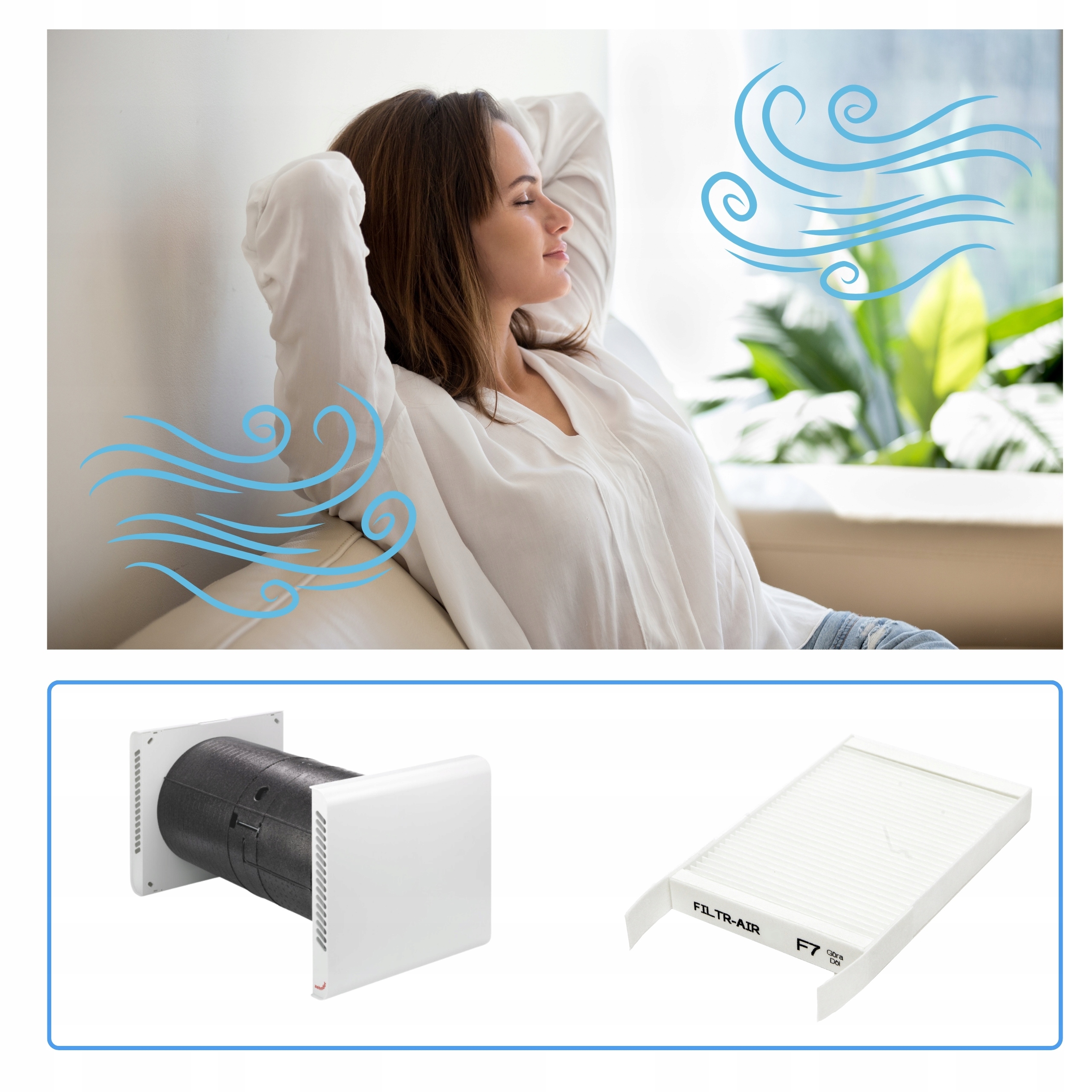 - 2 sztuki filtrów klasy F7 (EU7) – skutecznie oczyszczające powietrze