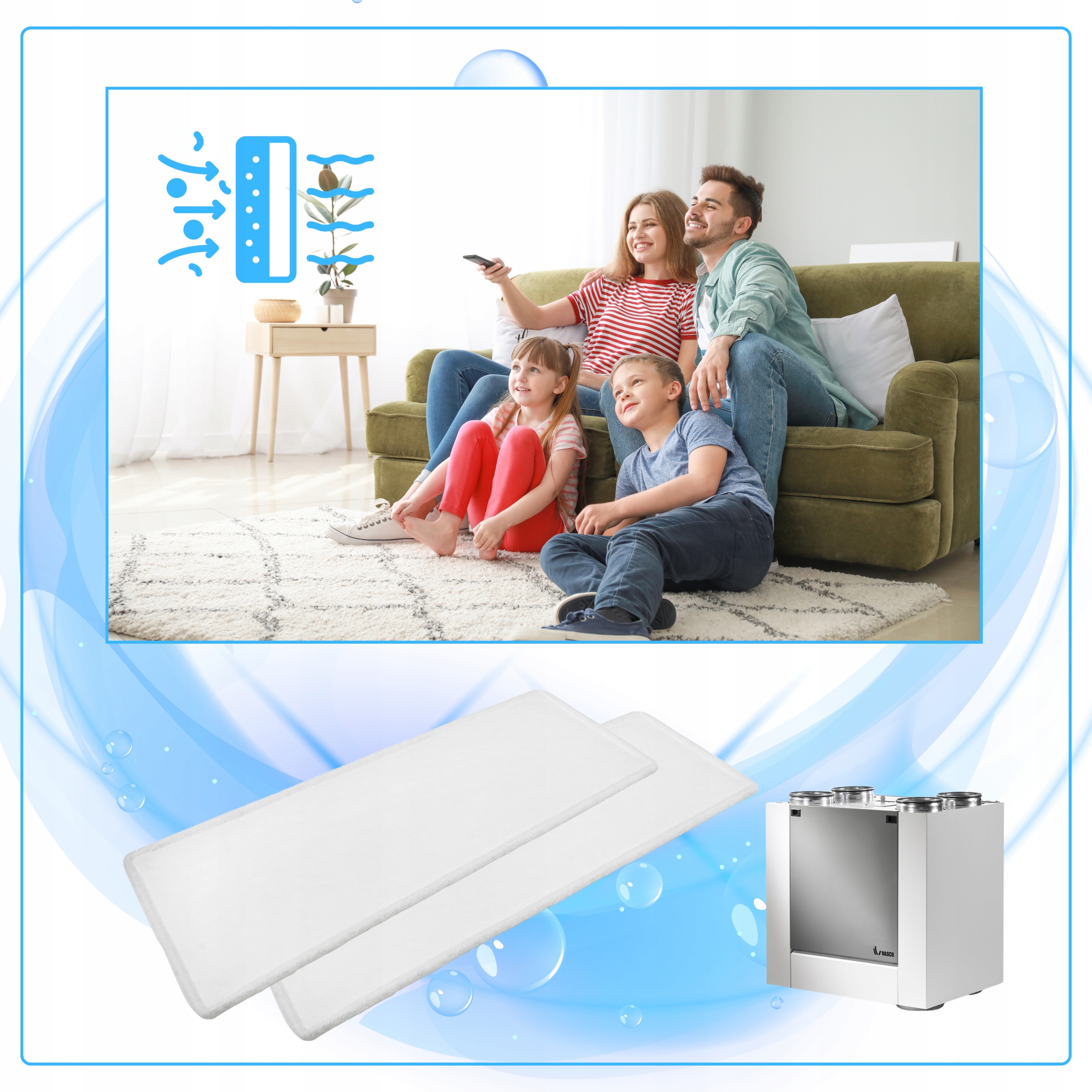 Filtr powietrza Vasco G4 + F7 to zaawansowane rozwiązanie do rekuperatorów Vasco X350, X450 i X500, oferujące skuteczne oczyszczanie powietrza z zanieczyszczeń.
