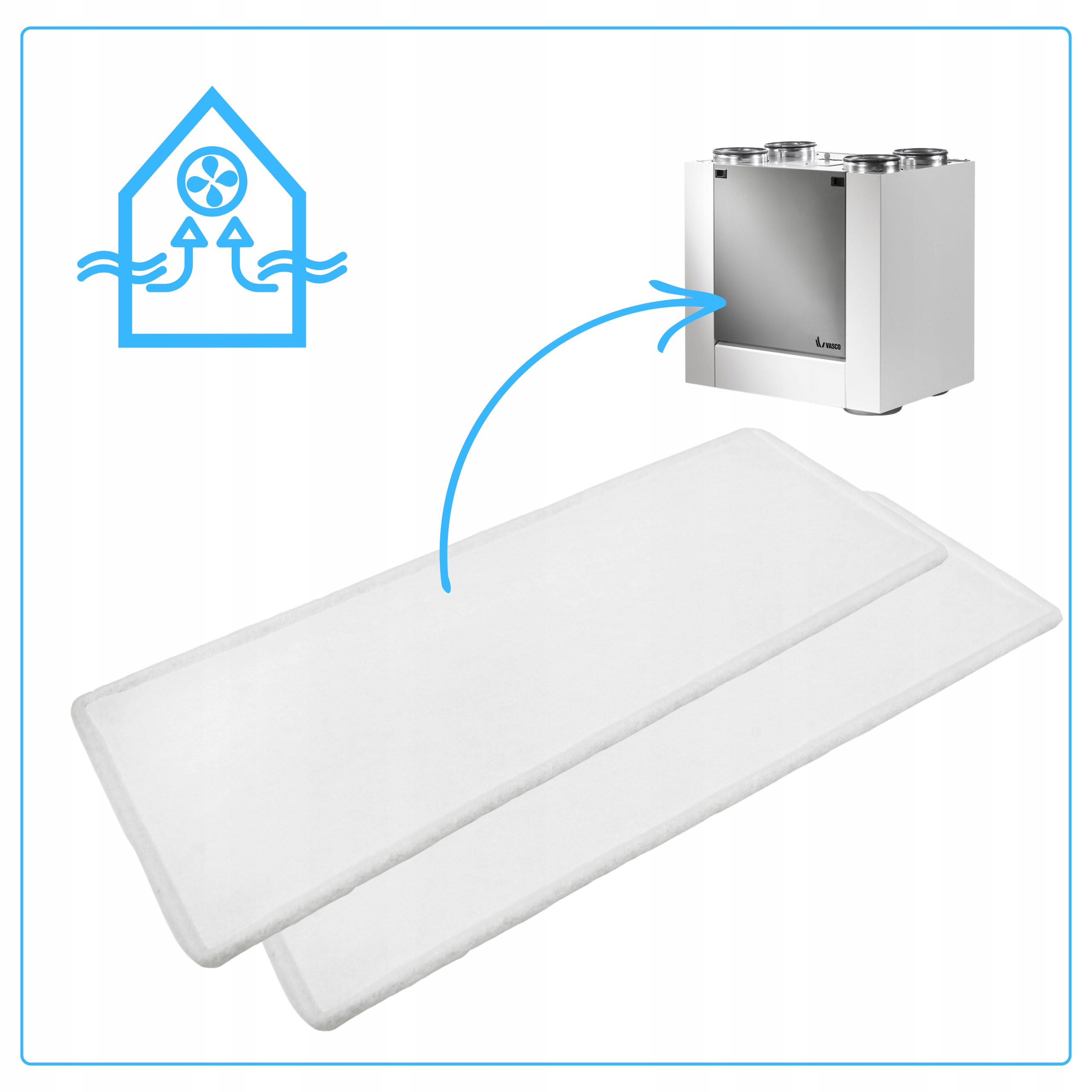 Filtry powietrza F7 do rekuperatorów Vasco są wysokiej jakości zamiennikami, które zapewniają skuteczną filtrację powietrza, współpracując z modelami X350, X450 i X500.