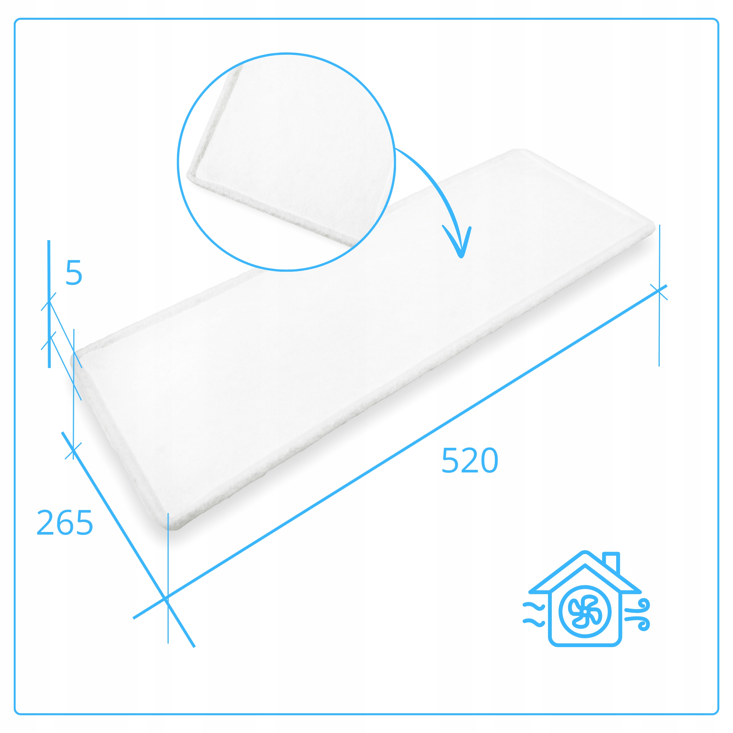 | Wymiary | Długość: 520 mm, Szerokość: 265 mm, Wysokość: 5 mm |