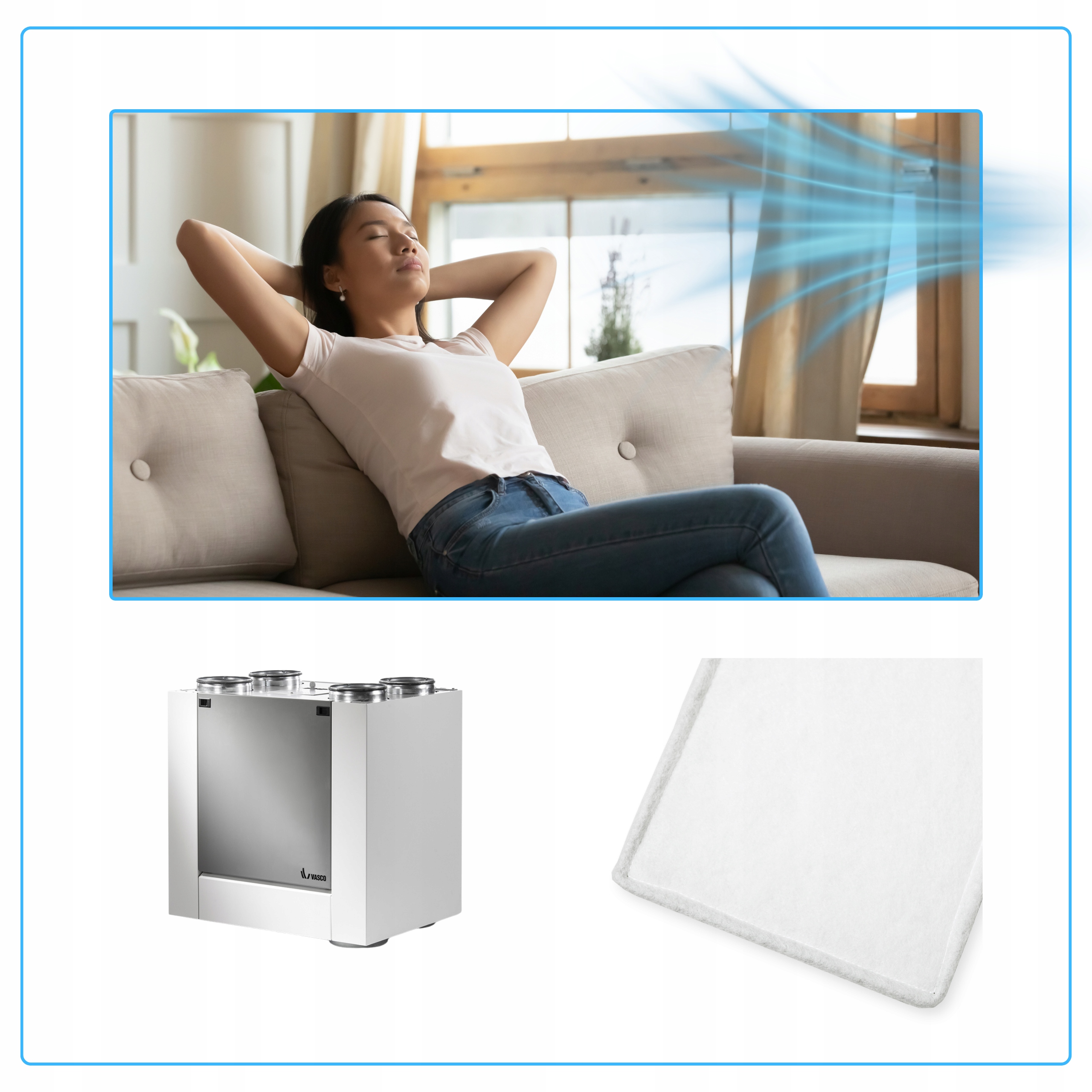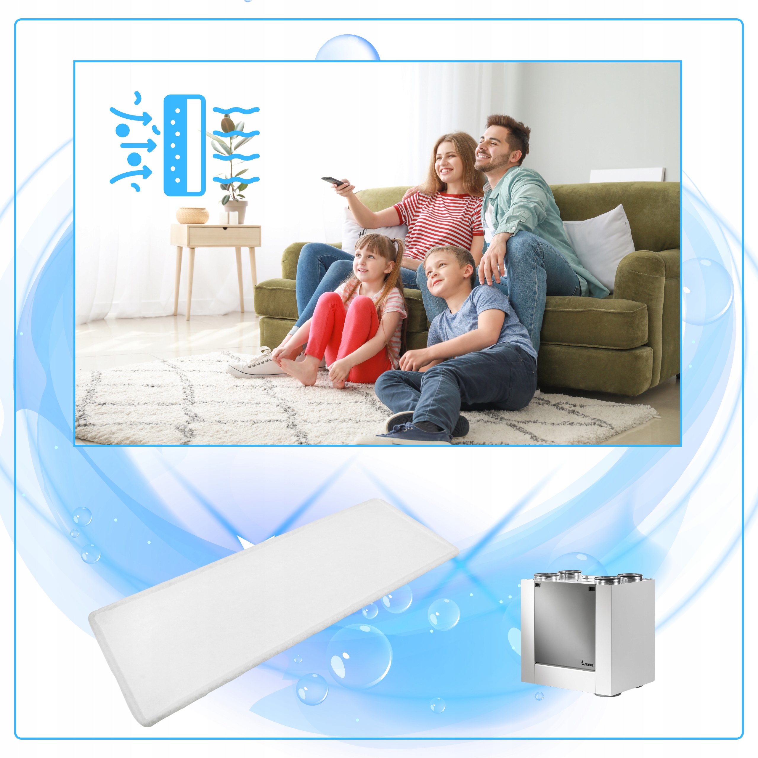 Filtr powietrza F7 Vasco do rekuperatorów X350, X450 i X500 zapewnia skuteczną filtrację powietrza, eliminując pyłki, spaliny i smog, a jego solidna konstrukcja gwarantuje długotrwałe użytkowanie.