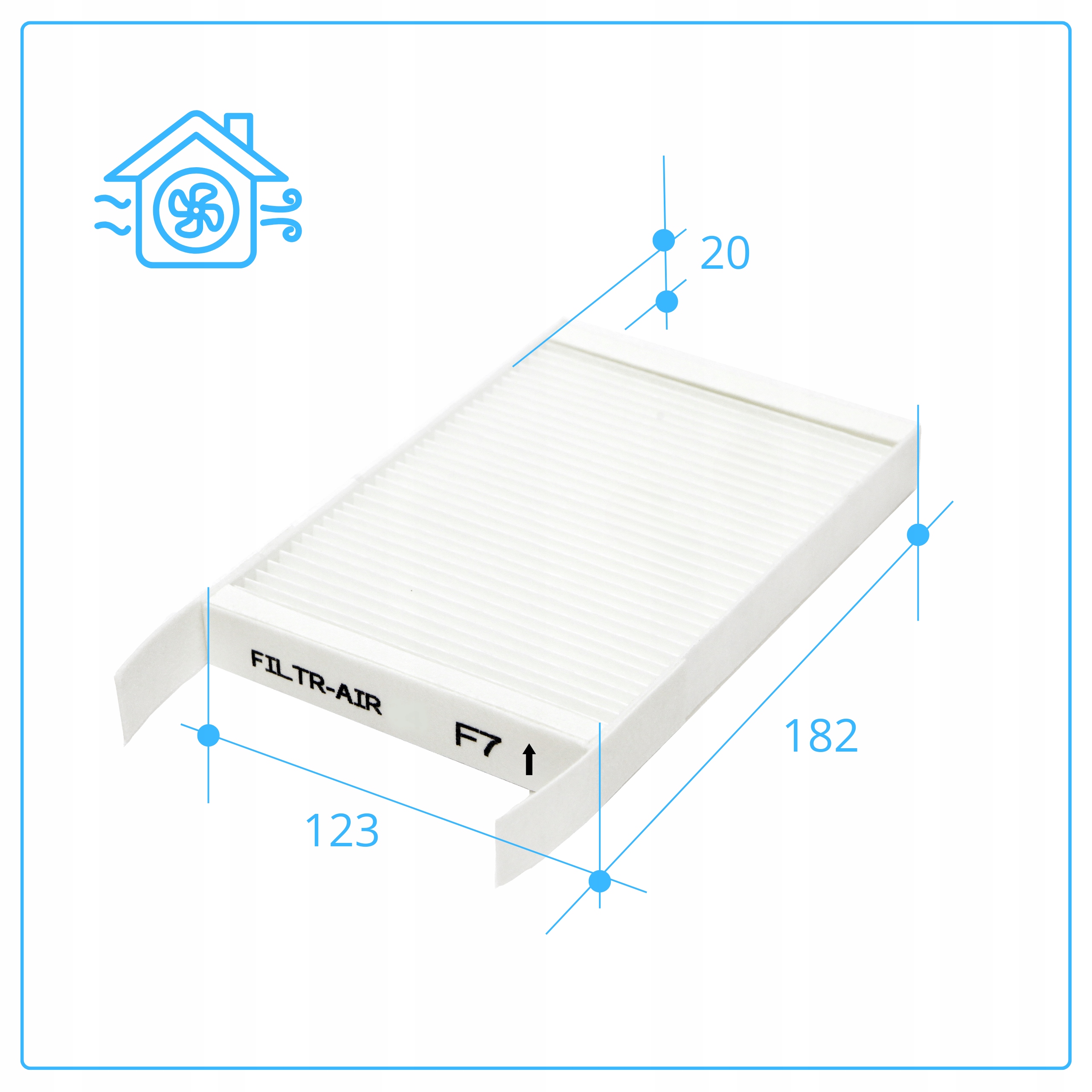 Filtr powietrza F7 (EU7) o wymiarach 500 x 200 mm, skutecznie filtrujący zanieczyszczenia, idealny do rekuperatorów Aeris i Zehnder. Kompatybilny z wieloma modelami, zapewnia wysoką efektywność filtracji.