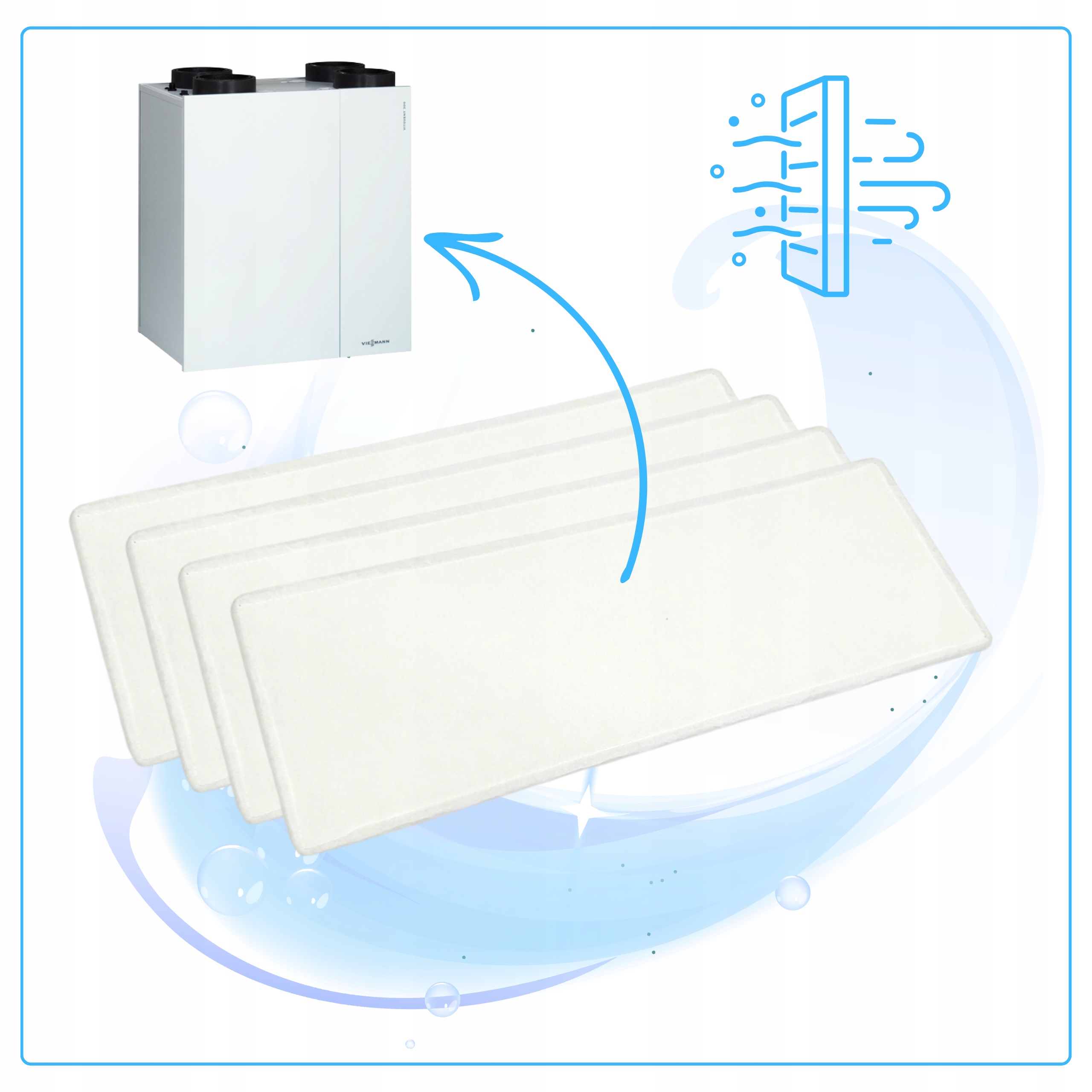 Filtr powietrza G4 do Viessmann Vitovent 300 W V4 zapewnia skuteczne wstępne oczyszczanie powietrza, zatrzymując zanieczyszczenia i poprawiając jakość powietrza w pomieszczeniach.