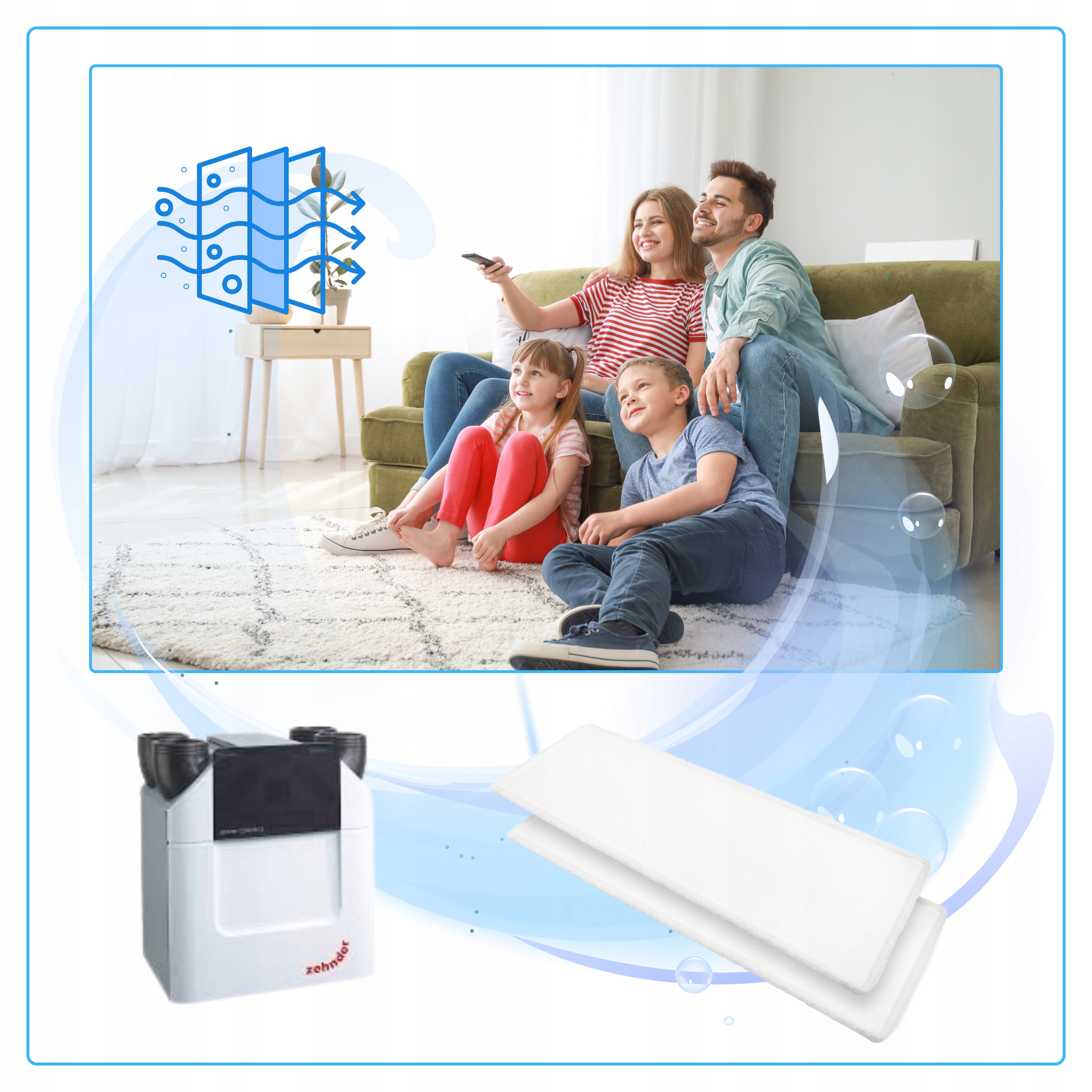 Zestaw filtrów G4 i F7 do rekuperatorów Zehnder Comfoair i Aeris Next, zapewniający efektywne oczyszczanie powietrza oraz ochronę systemu wentylacyjnego.