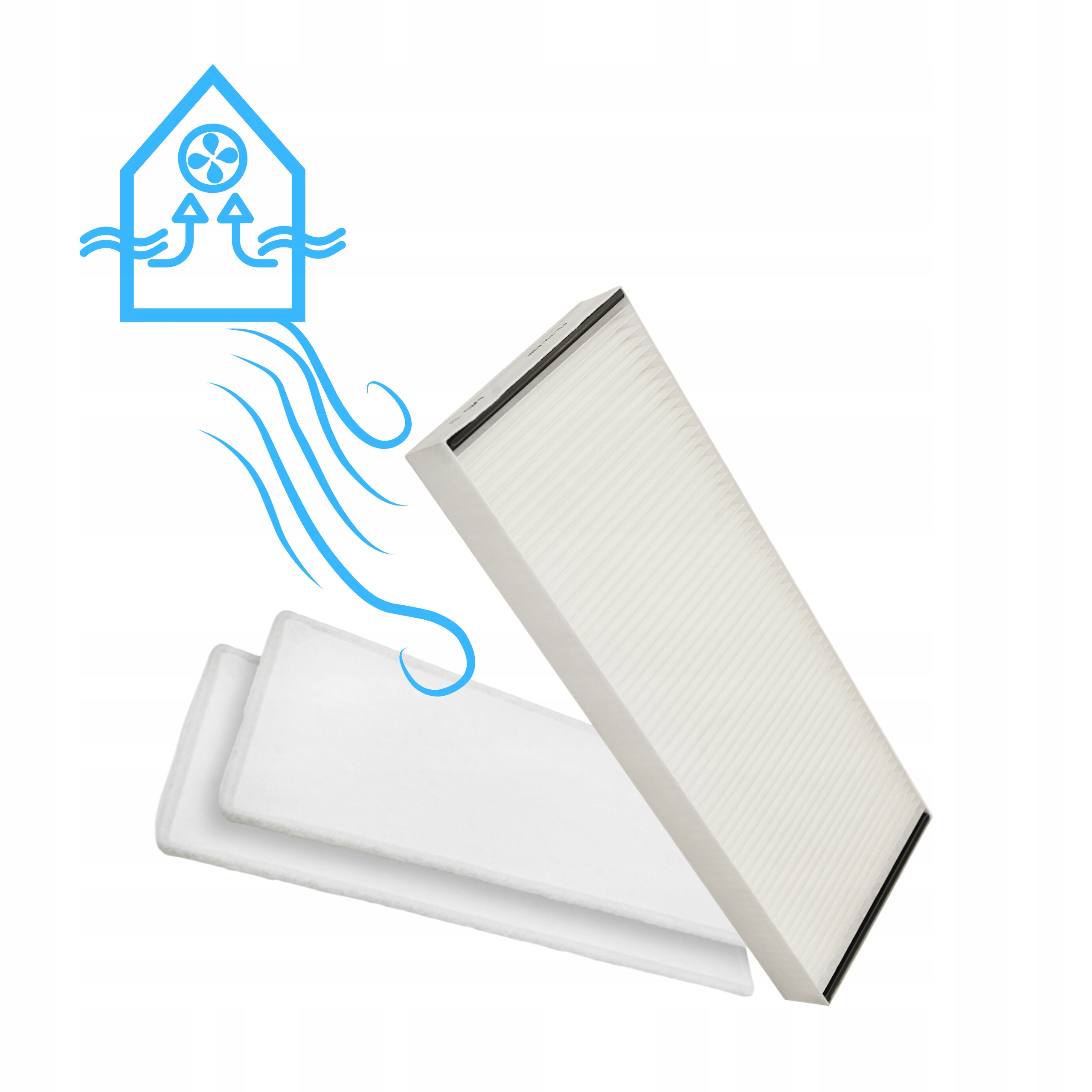 Filtr powietrza M5 oraz dwa filtry G4 do rekuperatorów Wanas, zapewniające efektywną filtrację i poprawiające jakość powietrza w pomieszczeniach.