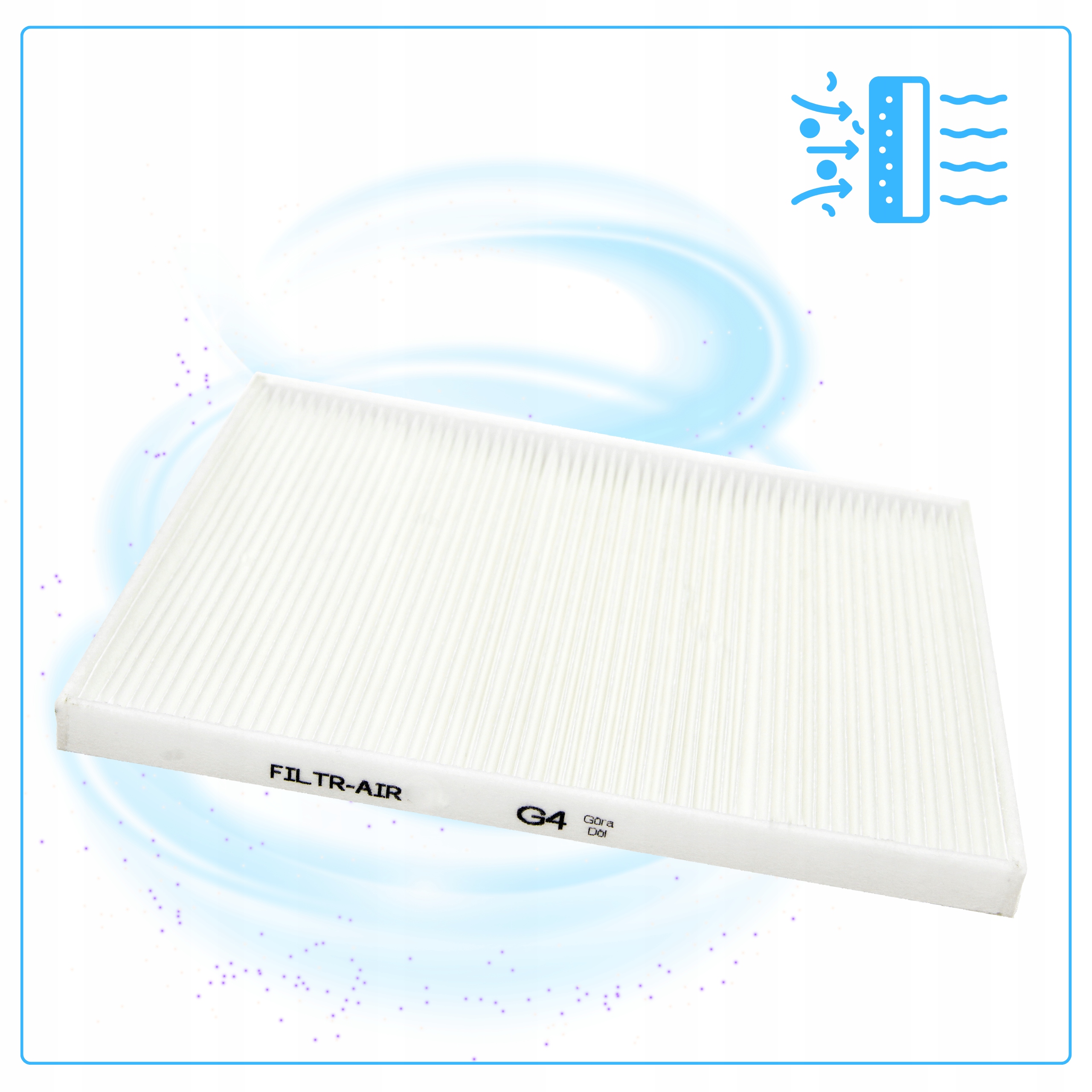 Filtr powietrza G4 o wymiarach 500 x 200 mm, kompatybilny z wieloma modelami rekuperatorów Aeris i Zehnder, zapewnia efektywną filtrację podstawowych zanieczyszczeń.