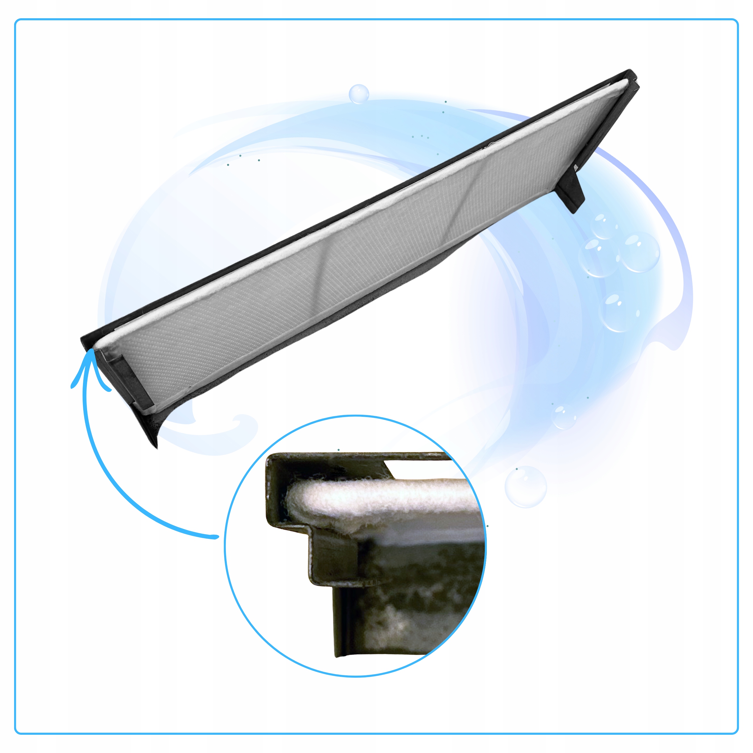 Filtr powietrza G4 o wymiarach 500 x 200 mm, kompatybilny z wieloma modelami rekuperatorów Aeris i Zehnder, zapewnia efektywną filtrację podstawowych zanieczyszczeń.