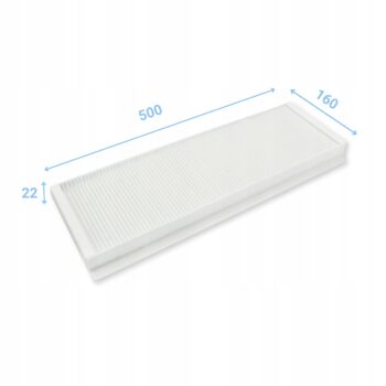 Filtr F7 (EU7) do rekuperatorów Zehnder i Aeris, skutecznie oczyszczający powietrze z zanieczyszczeń, o wymiarach 500 mm x 160 mm x 5 mm.