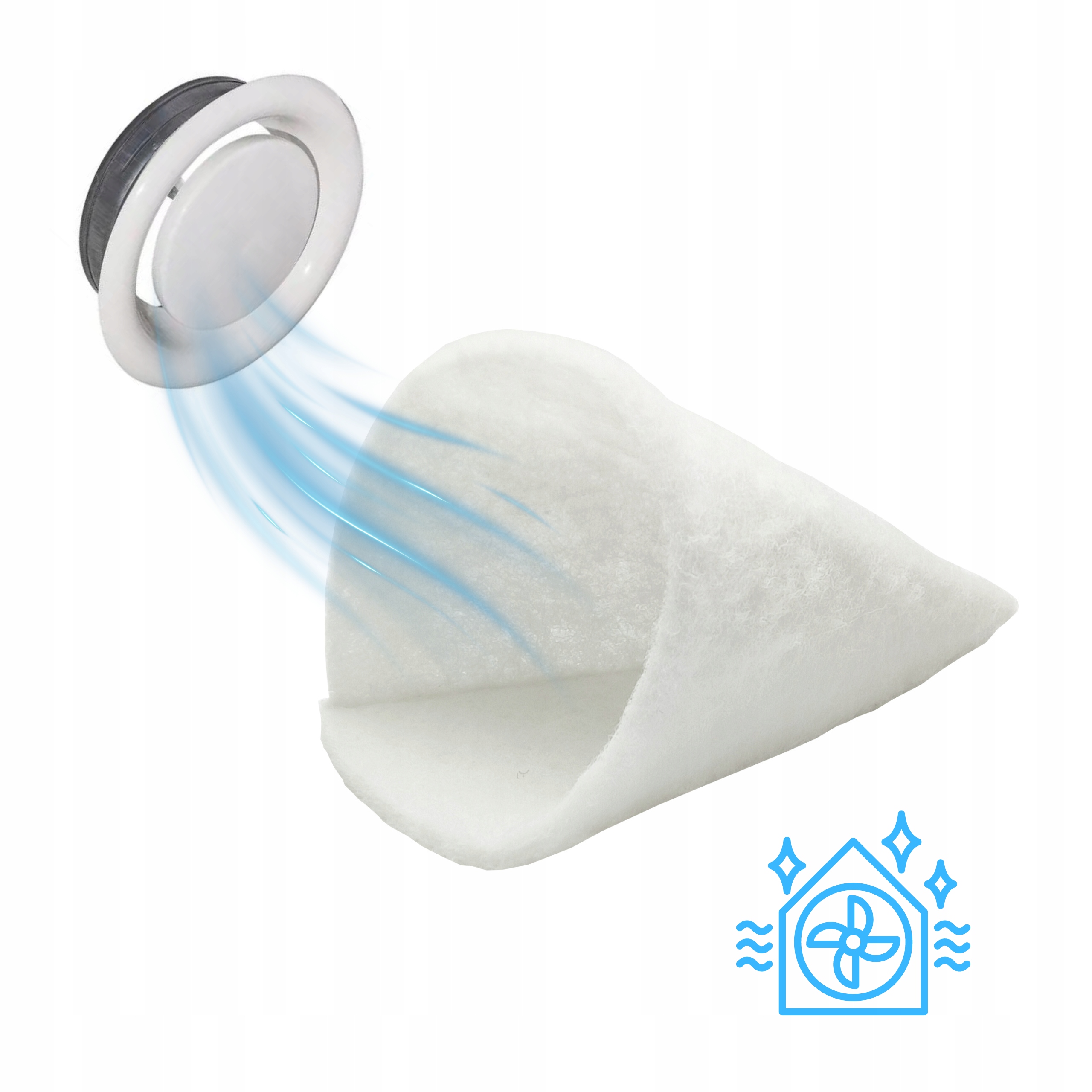 Filtr stożkowy 100 mm do anemostatów okrągłych, skutecznie zatrzymujący zanieczyszczenia. Zestaw zawiera 10 sztuk filtrów wykonanych z trwałej tkaniny poliesterowej.
