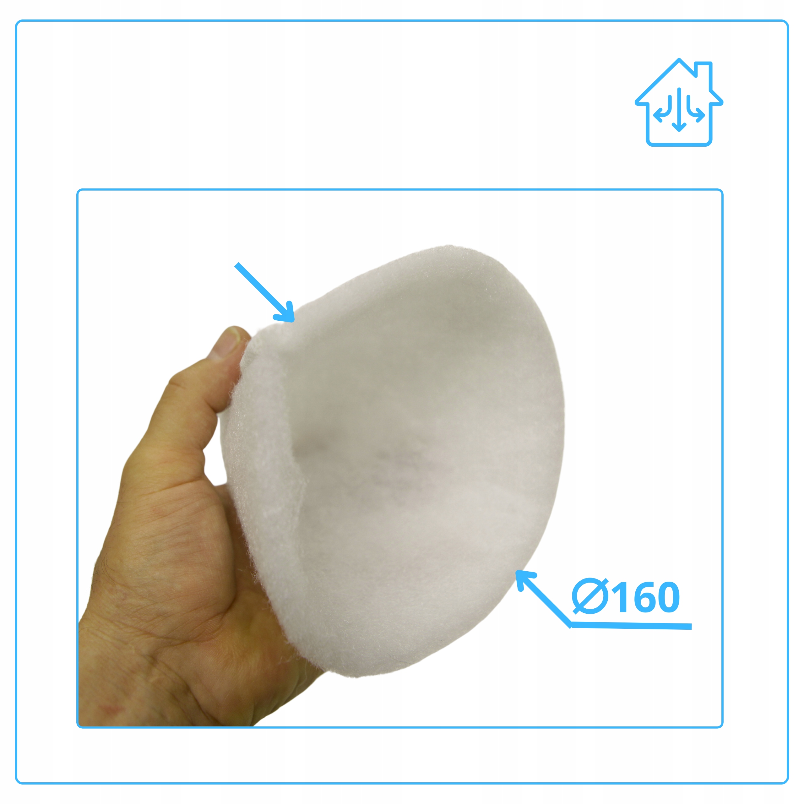 Zestaw 8 stożkowych filtrów powietrza o średnicy 160 mm, idealnych do anemostatów okrągłych, zapewniający skuteczną filtrację zanieczyszczeń.